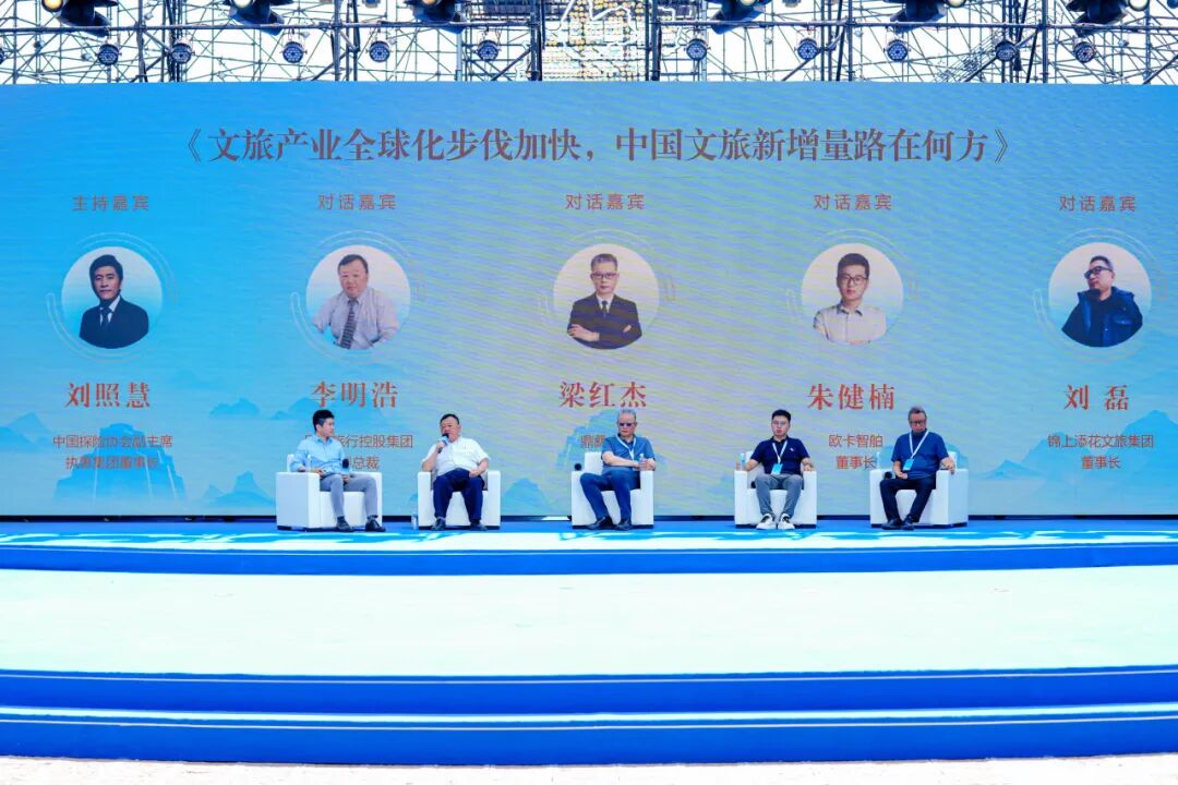 27日上午,在文旅产业高质量发展系列论坛研讨环节,梁红杰董事长就《文旅产业全球化步伐加快,中国文旅新增量路在何方》话题,与中国探险协会副主席、执惠集团董事长刘照慧,同程旅行控股集团副总裁李明浩,锦上添花文旅集团董事长刘磊,欧卡智舶董事长朱健楠进行了精彩对话。